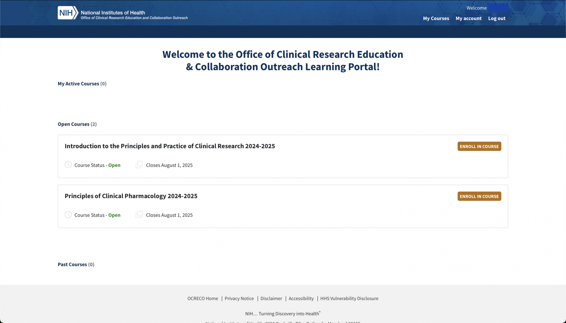 Office of Clinical Research Education & Collaboration Outreach Learning Portal (requer registo)